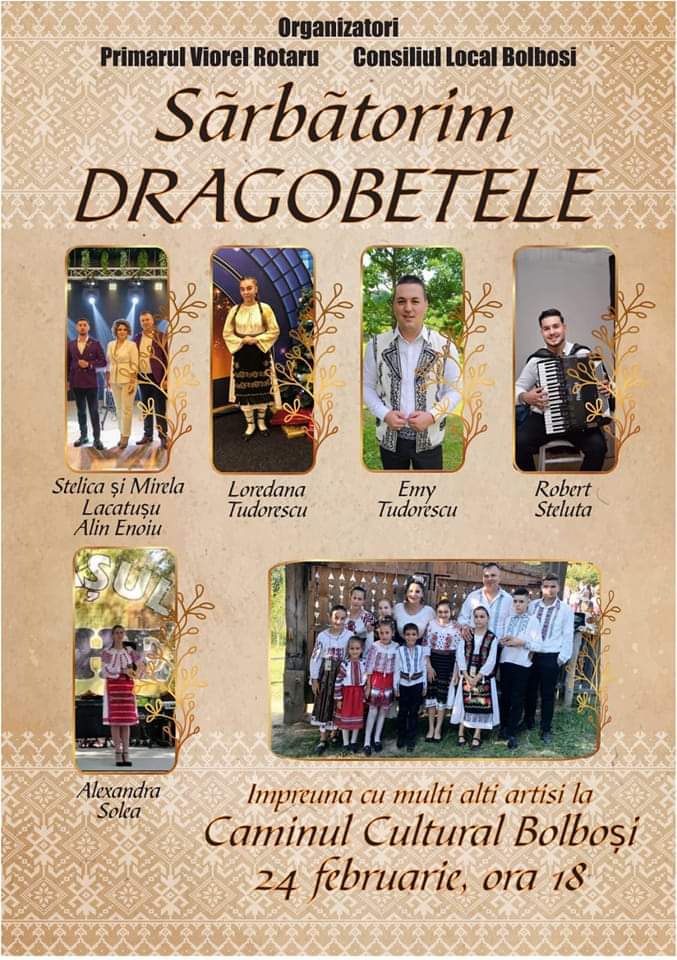 Vineri, 24 februarie, de Dragobete, începând cu ora 18:00 o să cânte muzica la Bolboși.